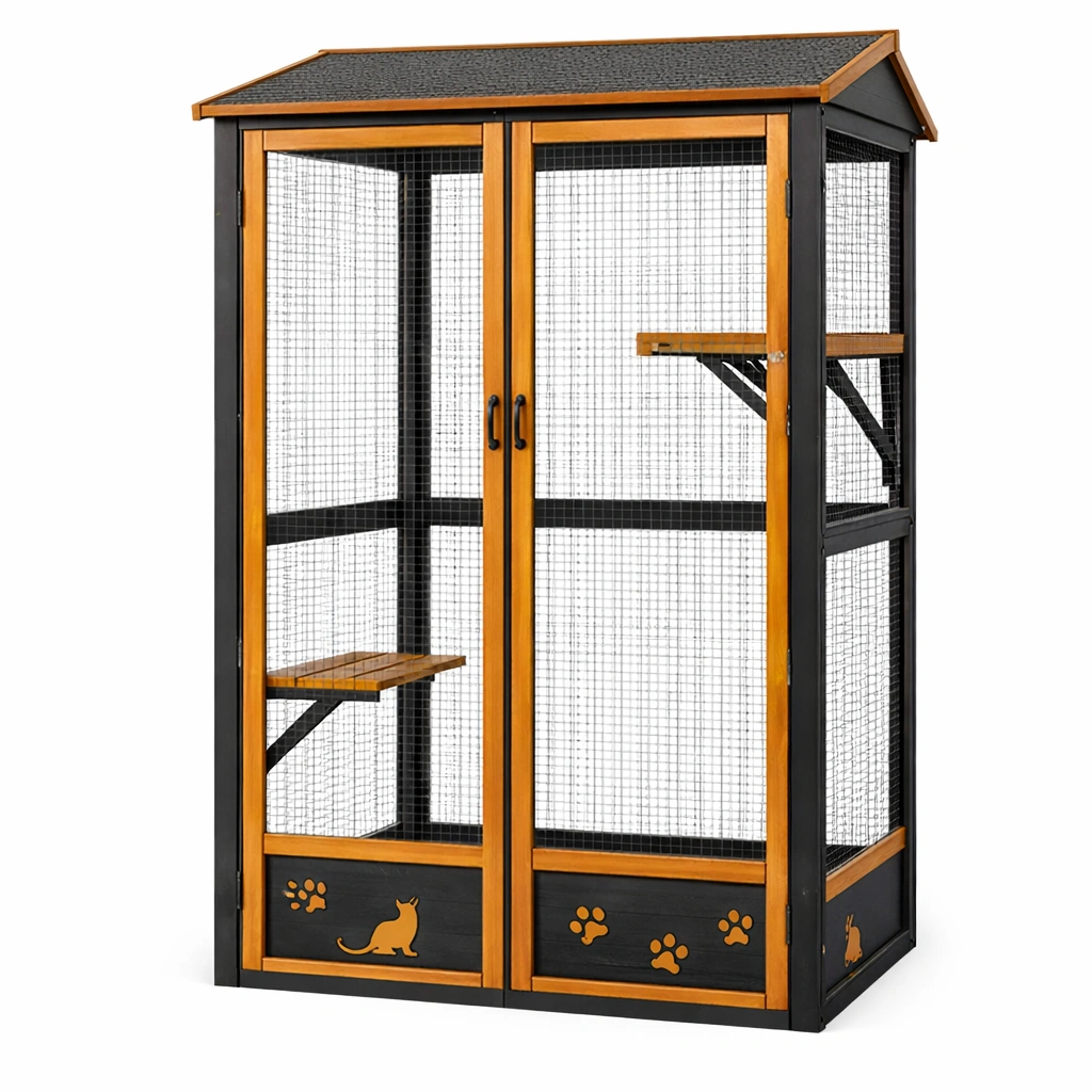 Katzengehege Holz mit Metallgitter Schwarz Orange 180x90x130 cm