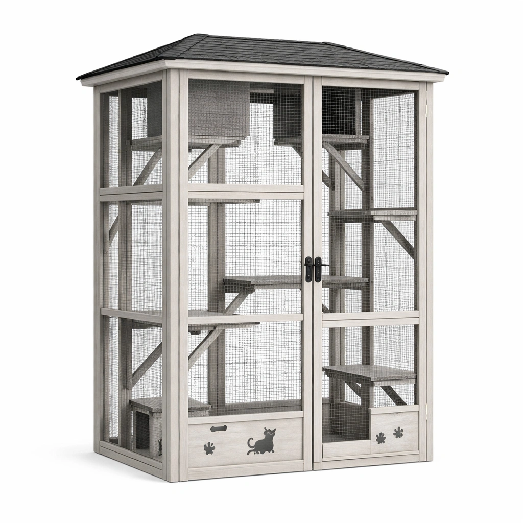 Katzengehege Metall mit Sperrholzregalen Beige Grau