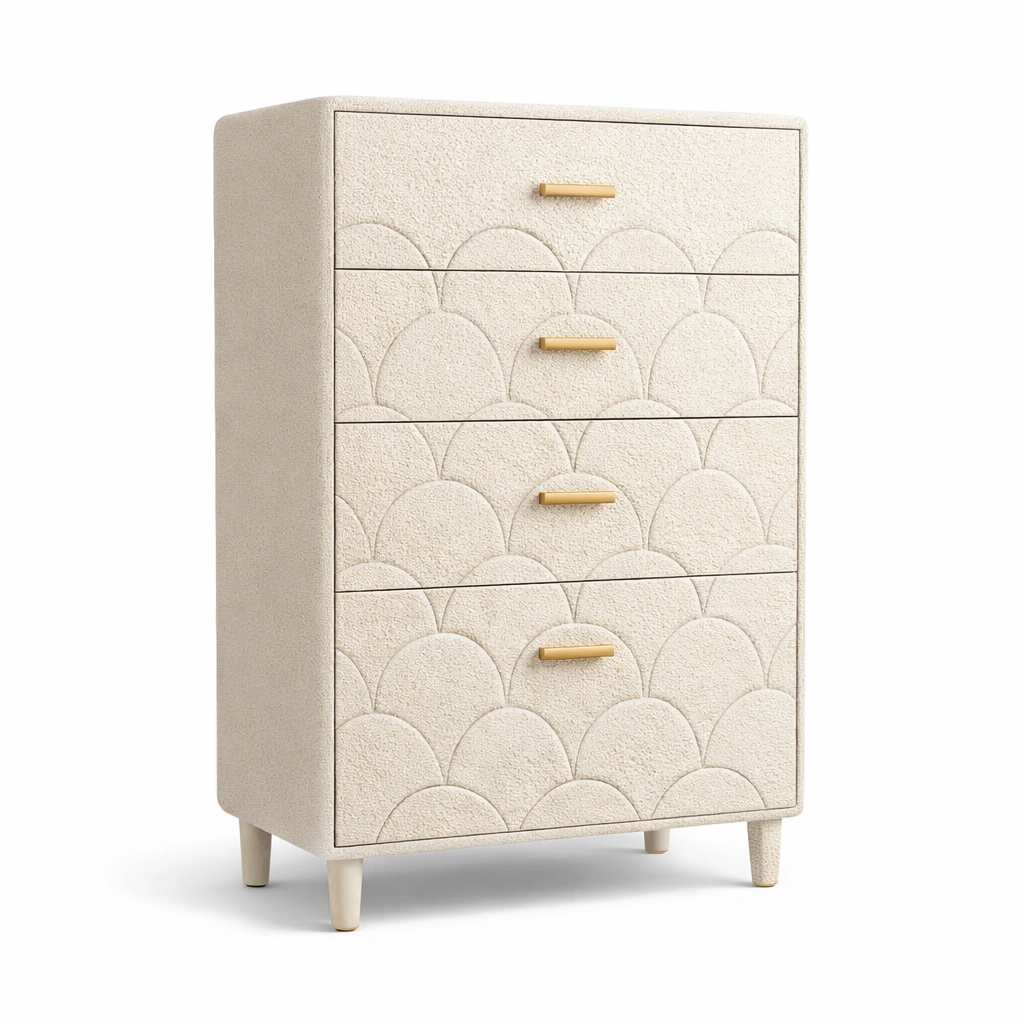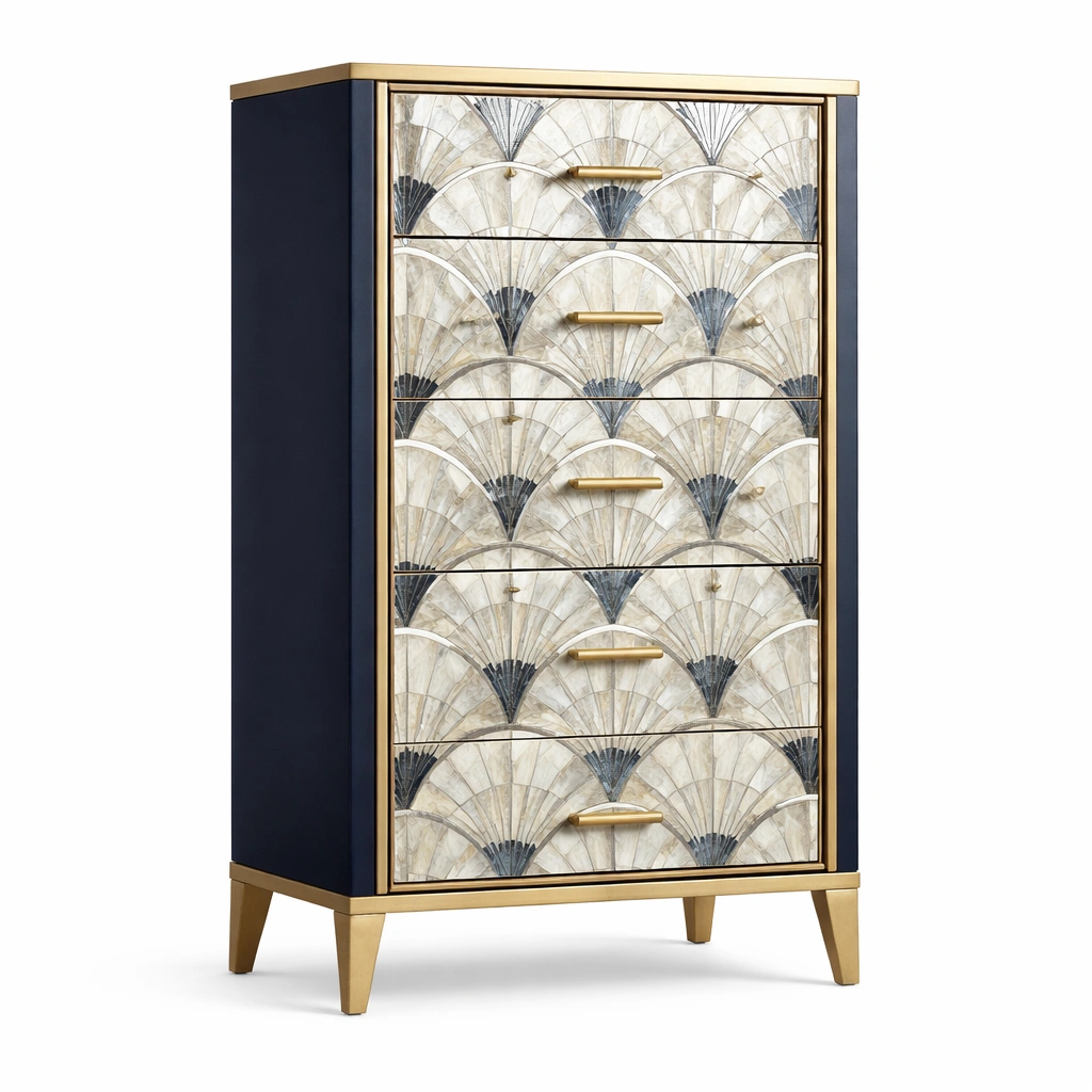 Kommode Holz Weiß mit Metallgriffen und 5 Schubladen