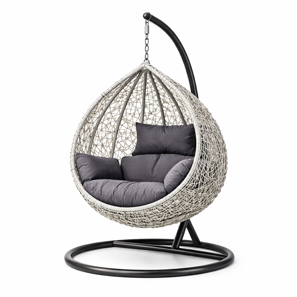 Material: Rahmen: Stahl, Sitz: Polyethylen Rattan, Kissenbezug: Polyester